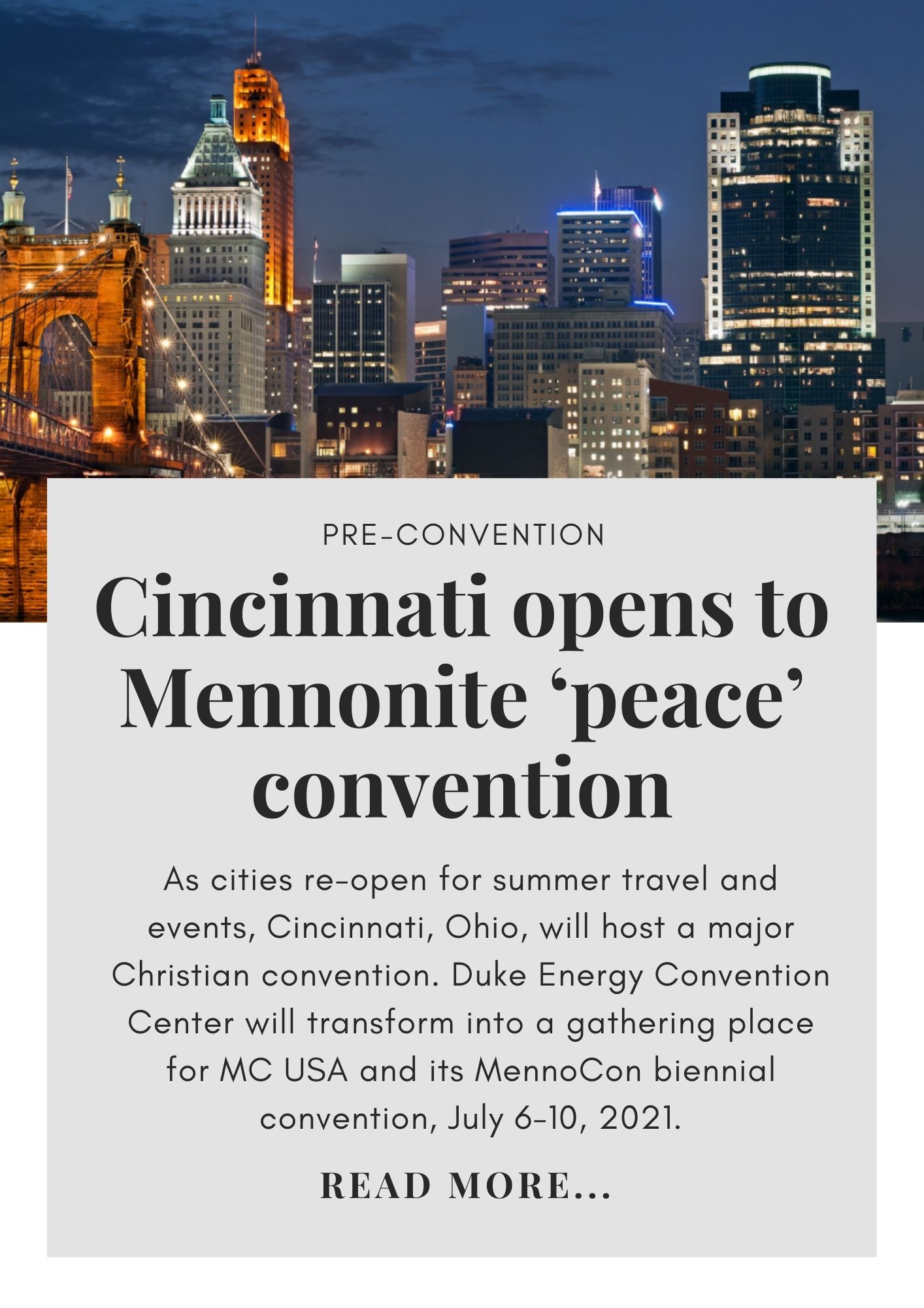 Below you can find the archived news sheet from #MennoCon21 which was held in Cincinnati in July 2021. Some links may have expired.