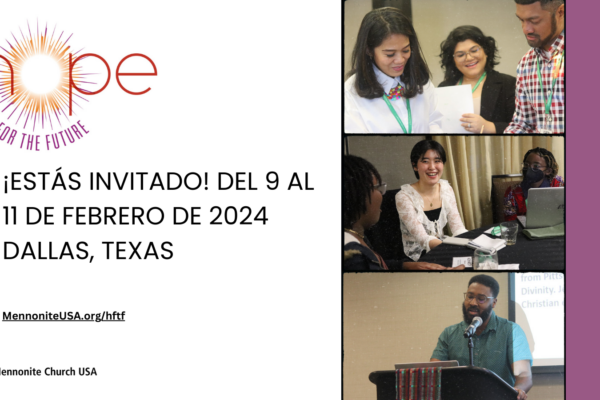 By Jessica Griggs for Mennonite Church USA ELKHART, Indiana (Mennonite Church USA) — Registration for Mennonite Church USA’s Hope for the Future conference, to be held in Dallas, Texas, Feb.... read more →