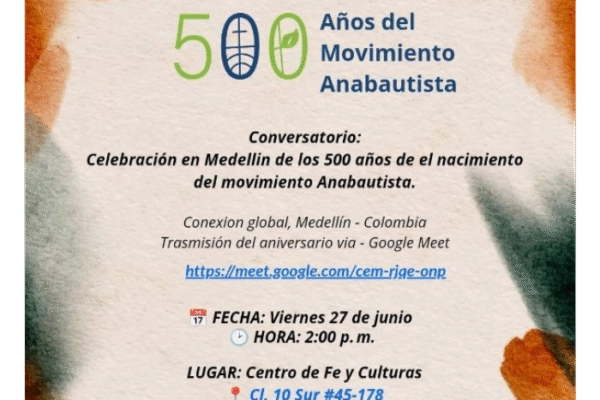 por Javier Márquez El próximo jueves 27 de junio en Medellín se celebrará un conversatorio interreligioso en conmemoración de los 500 años del surgimiento del movimiento anabautista. Esta iniciativa nace... read more →